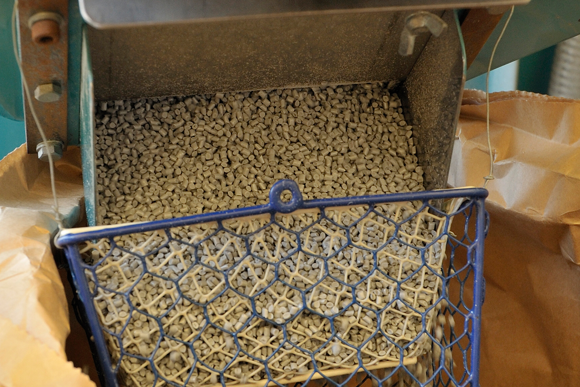 At the Higashi Ogaki Plant, we used to dispose of the material purged*1 from resin molding machines in order to switch to another material when change to another mold or material, but we have begun to sell this purged material as a valuable resource in cooperation with businesses. This year, we limited the number of production lines where we did this,resulting in a reduction of approximately 4 tons of waste. Going forward, we will expand this measure to all production lines, which is expected to reduce waste by approximately 68 tons per year.