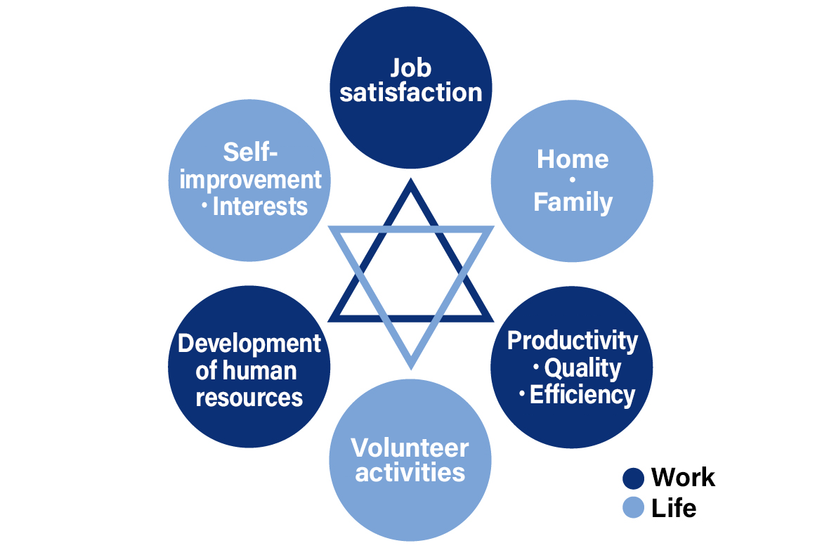 We believe that sustainable growth of the company will be achieved when all employees are physically and mentally healthy and able to demonstrate their individuality and abilities to create new value.